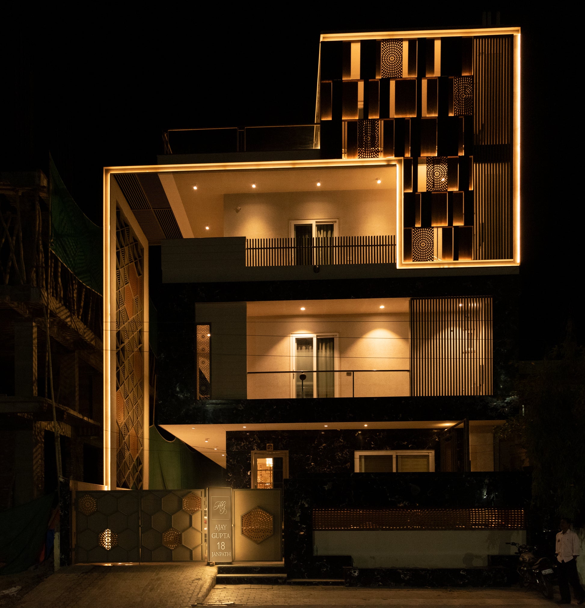 Illuminated by carefully orchestrated lighting, the architectural masterpiece showcases every feature. Light and shadow interplay to enhance the overall aesthetic, creating a captivating and timeless expression of contemporary elegance. Witness the exterior gracefully illuminated, leaving a lasting impression of discerning taste and sophistication.