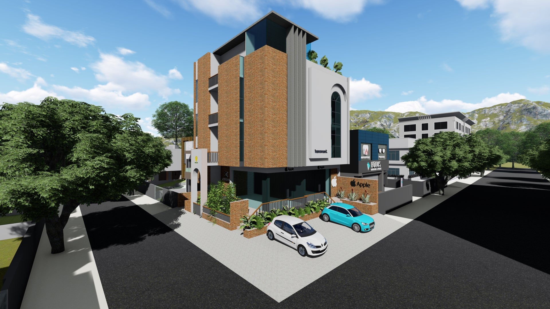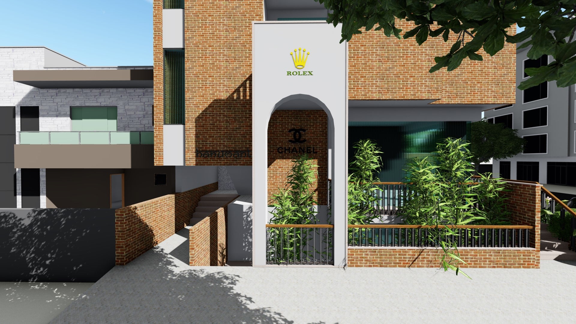 The facade combines arched structures with glass against a timeless brick backdrop. This blend of elements creates a visually striking and harmonious aesthetic, showcasing architectural ingenuity and artistic vision.