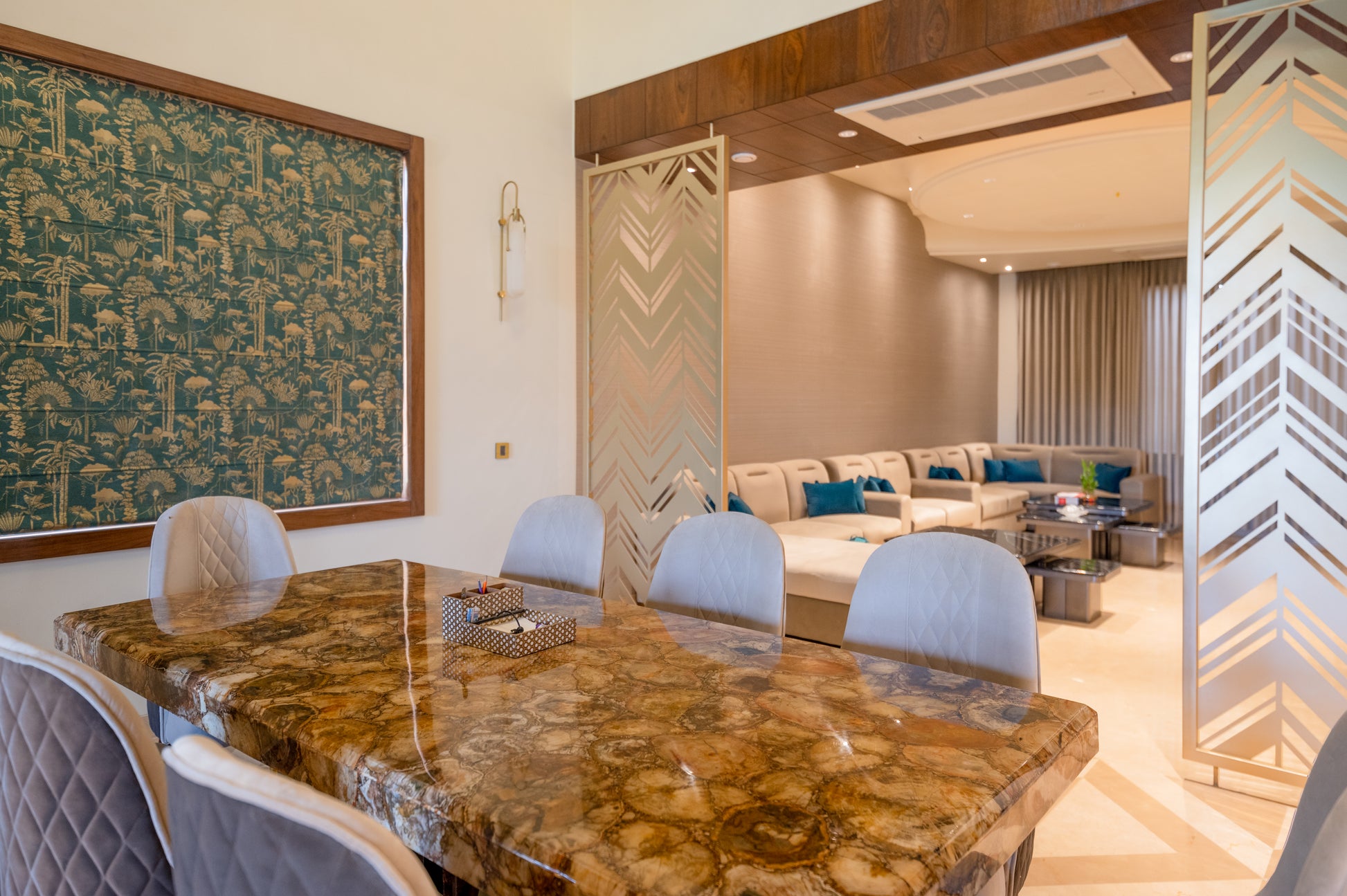 Step into this architecturally stunning contemporary home, where form and function flawlessly fuse. Flooded with natural light, it offers unmatched comfort, transforming into a true sanctuary. Experience a retreat where modern design meets luxury, curated for a visually striking experience. Delight in the chic dining area with clean lines and abundant light, perfect for gatherings. Embrace contemporary living with sleek furnishings and a monochromatic palette, creating a harmonious environment for entertainment.