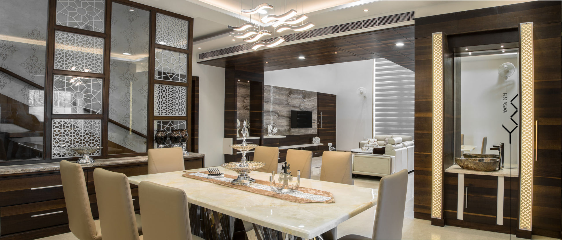 maintenance and ample space for business entertainment, the design avoided excessive quirkiness and stereotypical elements. Each component was carefully selected to enhance functionality and elevate the overall aesthetic, resulting in a harmonious fusion of modern sophistication and inviting comfort.